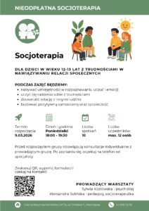 SOCJOTERAPIA – WOLNE MIEJSCA W GRUPACH DLA DZIECI I MŁODZIEŻY – SPECJALISTYCZNA PORADNIA OPTA